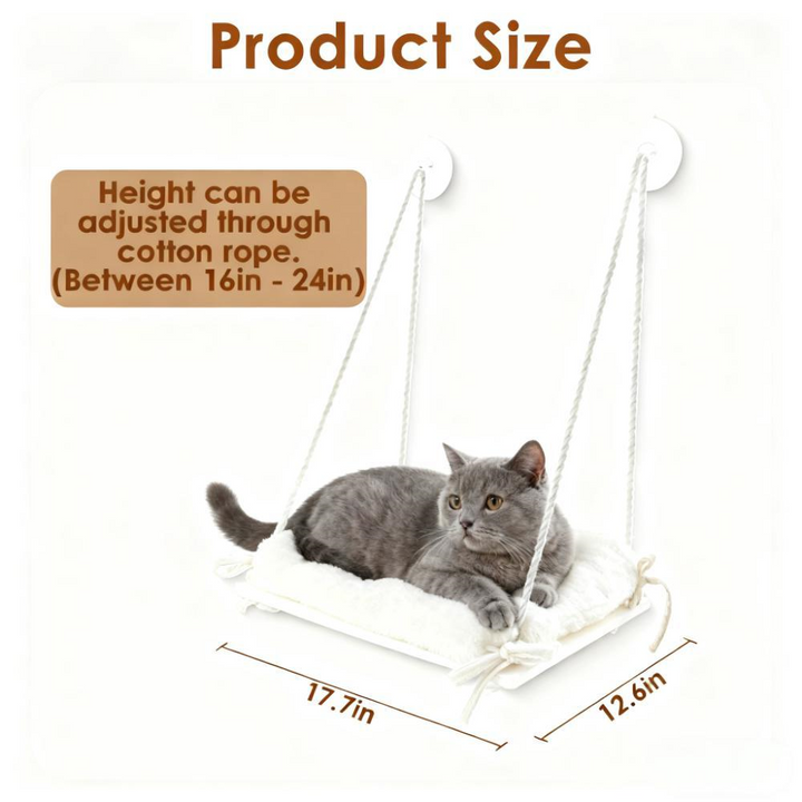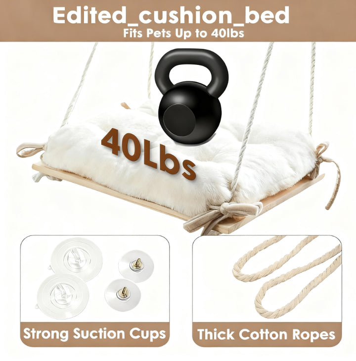 Constructed from sturdy pine wood and reinforced cotton ropes, it delivers reliable strength and supports cats up to 40 lbs. Four strong suction cups provide excellent stability, keeping your pet safe while they lounge.
